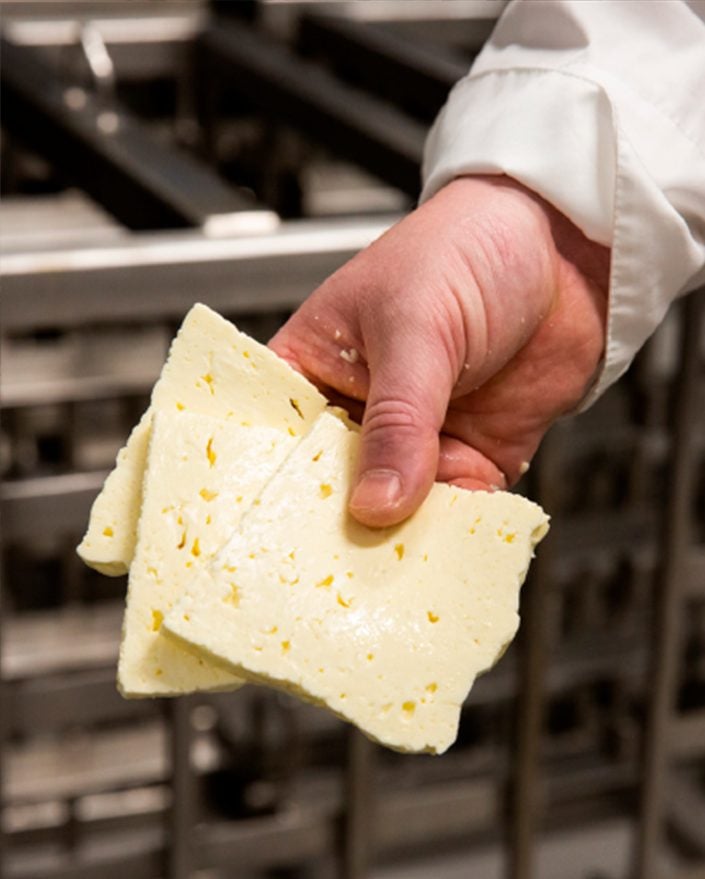 Mjölken ystas med vegetabiliskt ystenzym.