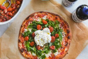 När tiden är knapp och hungern är stor är svaret pizza. Extra god blir den med riven halloumi på toppen, ugnsbakade tomater och burrata. Avsluta