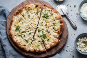 När tiden är knapp och hungern är stor är svaret pizza. Extra god blir den med riven halloumi på toppen, ugnsbakade tomater och burrata. Avsluta