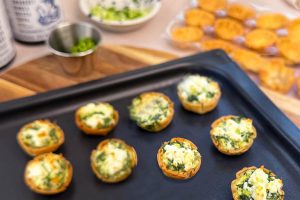 Små spanakopita krustader med fetaost, dill & salladslök