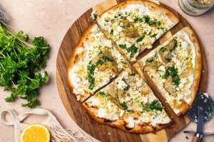 Pizza med kronärtskocka, Fetaost och vitlökssmör