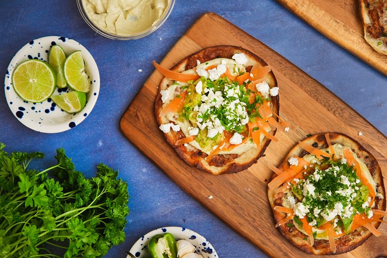 Här möts saftig kycklingfärs, het Hummus Jalapeño salt och fetaost på ett nygrillat tortillabröd. Toppat med morot, avokado och en generös ringling av olivolja blir detta en snabb och färgstark middag som imponerar – varje gång.